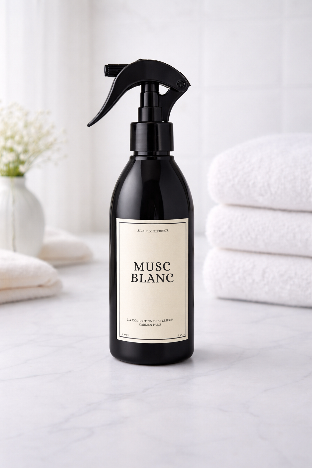 Spray textile à l’odeur pure et raffinée, parfait pour une ambiance propre et élégante.